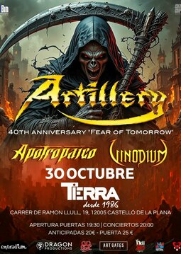 ARTILLERY: la mítica banda danesa pionera del thrash metal europeo, conmemora el 40 aniversario de su primer disco titulado "Fear Of Tomorrow", lanzado al mundo en el año 1985, y lo celebrará con un tour de 8 fechas por toda la península Ibérica.